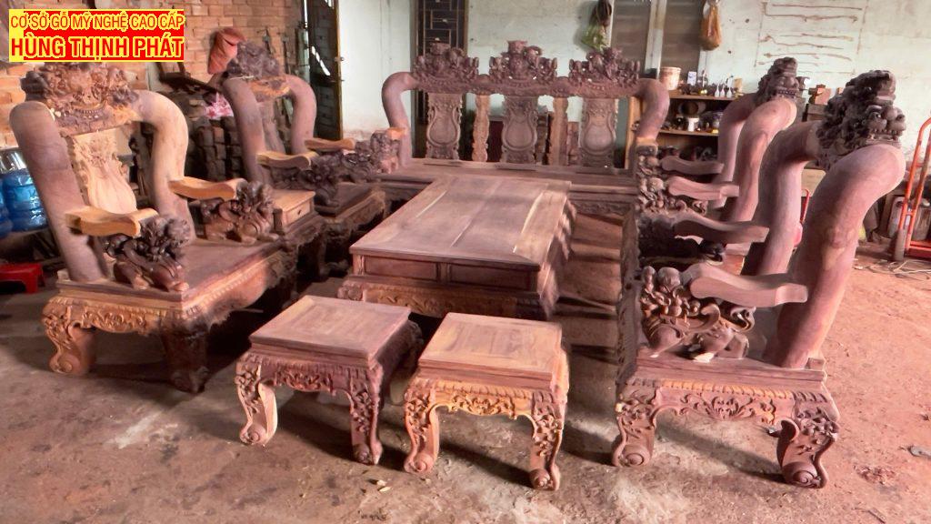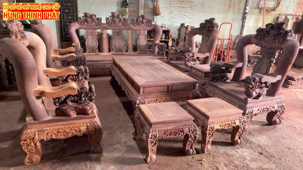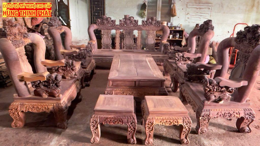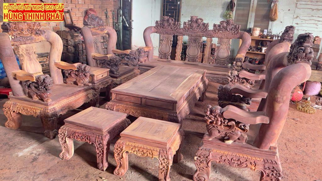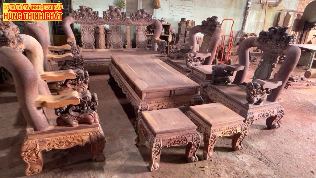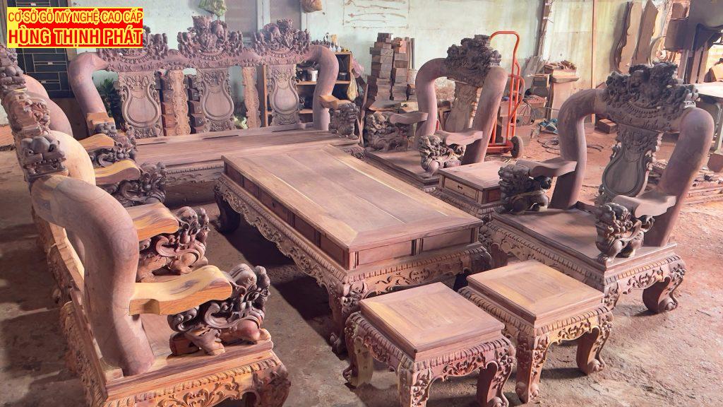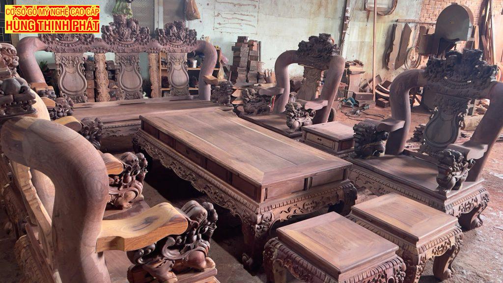 Sự khác biệt của Đồ Gỗ Hùng Thịnh Phát không chỉ nằm ở chất liệu gỗ quý mà còn ở quy trình sản xuất chuyên nghiệp và đội ngũ thợ lành nghề. Để tạo nên một bộ bàn ghế cẩm lai tay 16 hoàn hảo, chúng tôi đã phải trải qua nhiều công đoạn tỉ mỉ, từ việc lựa chọn gỗ, xẻ phôi, tẩm sấy, đến đục chạm và hoàn thiện.