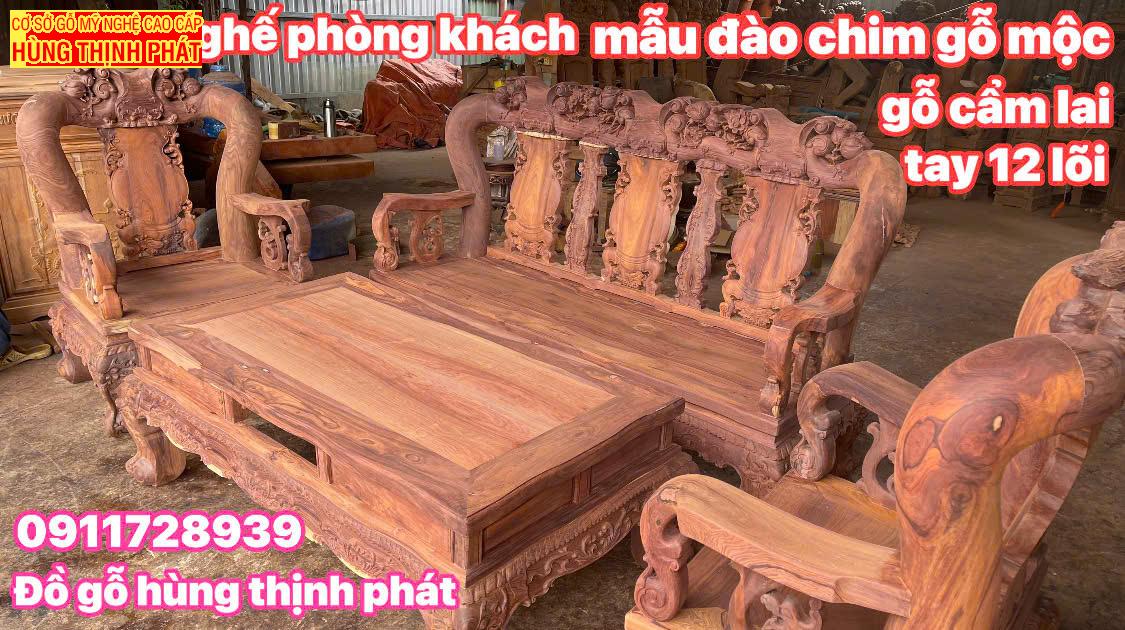 Đồ gỗ Hùng Thịnh Phát tự hào giới thiệu bộ bàn ghế phòng khách gỗ Cẩm Lai mẫu Đào Chim, một tác phẩm nghệ thuật độc đáo được chế tác riêng theo yêu cầu của một cửa hàng nội thất cao cấp.