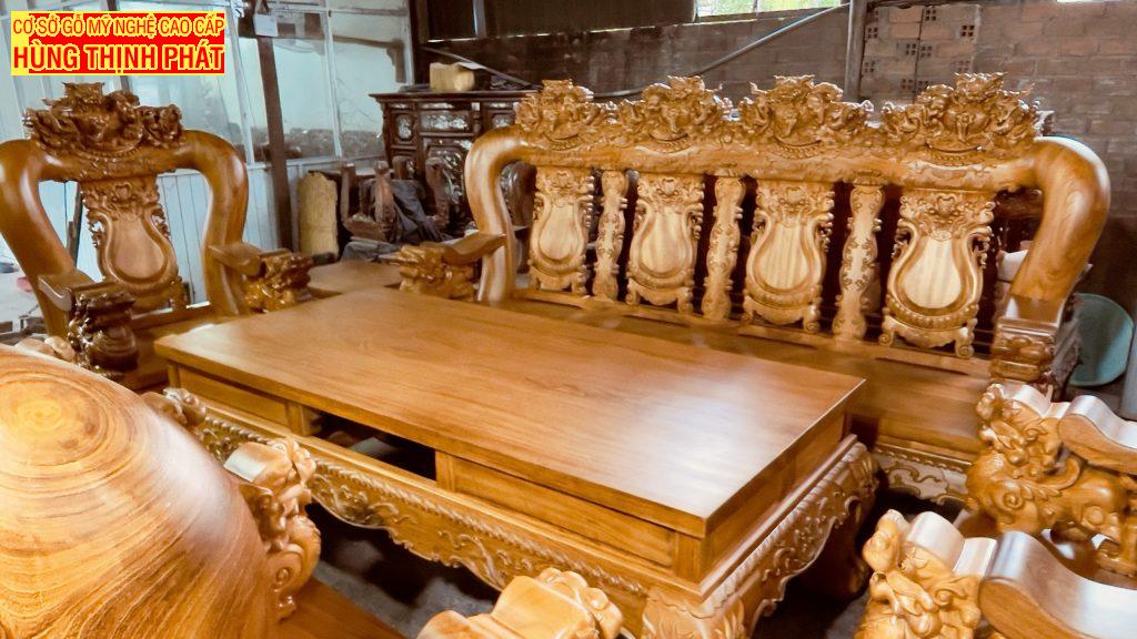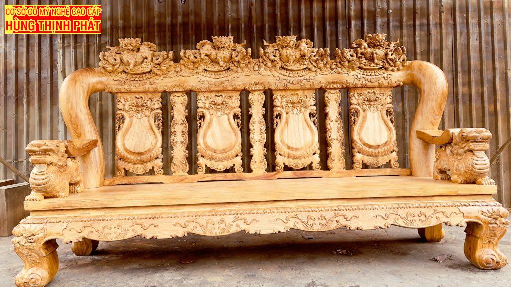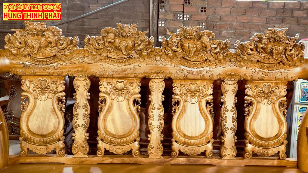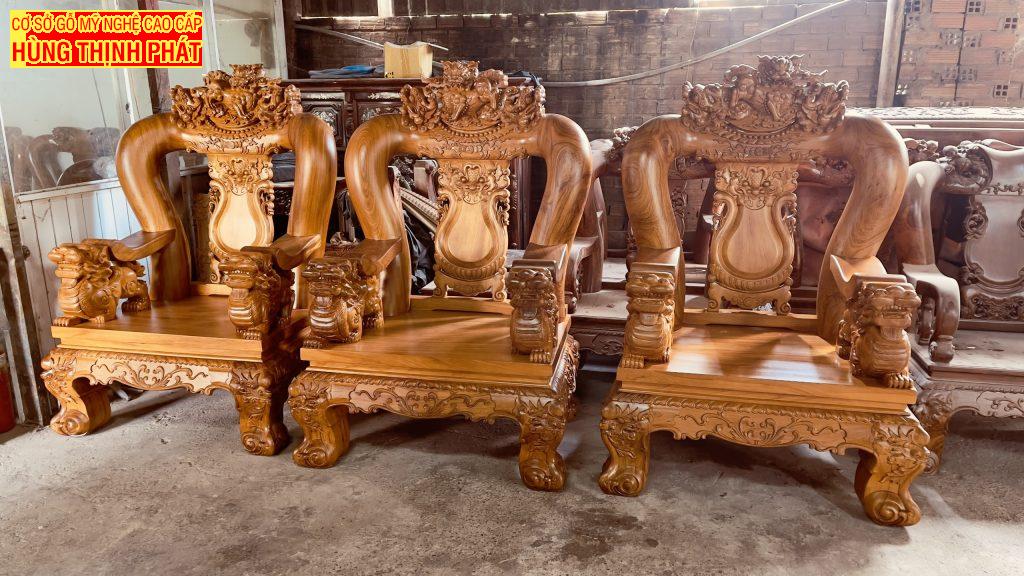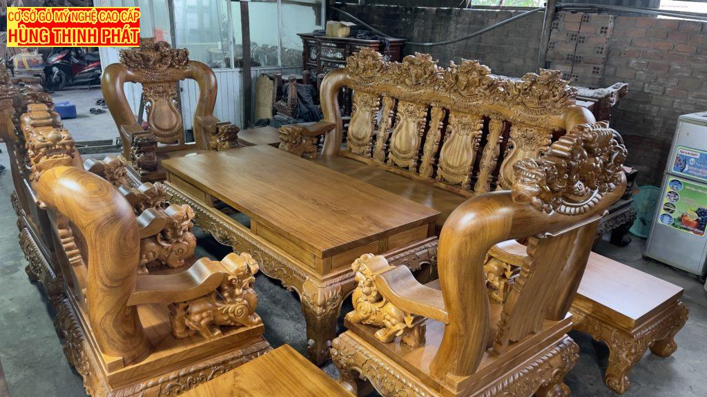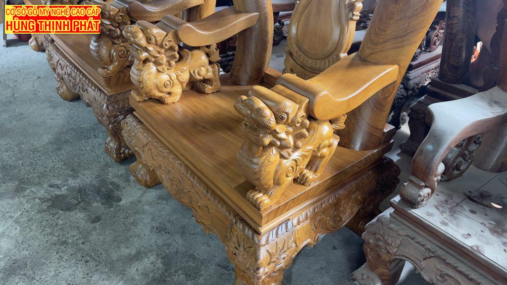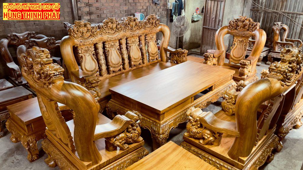Bộ bàn ghế phòng khách gỗ gõ đỏ tay 20 đục chạm nghê cao cấp. Sản phẩm kích thước thuộc loại lớn phù hợp với phòng khách diện tích lớn. Số món quý khách hàng có thể căn chỉnh theo diện tích, chi phí để có lựa chọn phù hợp với gia đình.