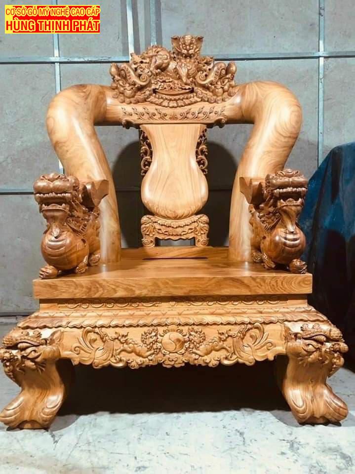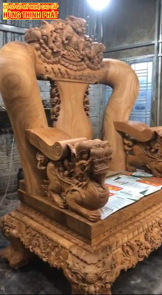 • Tay ghế chạm con Tì Hưu, tựa lưng kiểu Lục Bình.