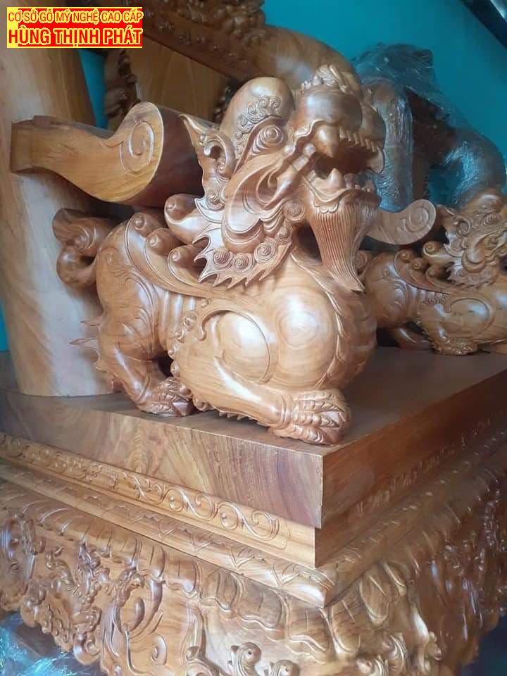 Ghế Dài với 3 Nghê Đỉnh, 3 Vách Lục Bình, Mặt Ghế dày 8cm theo yêu cầu của khách hàng