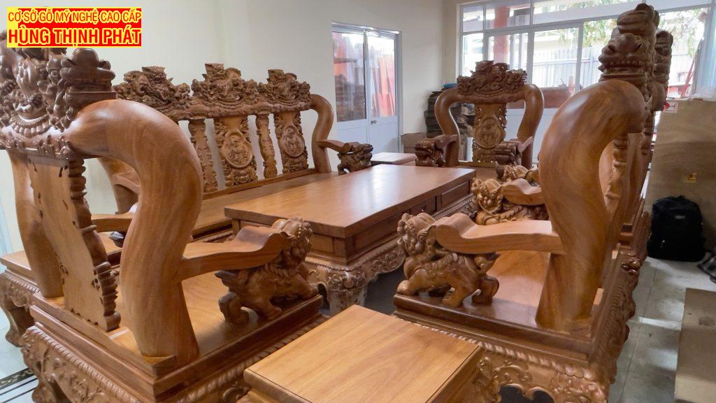 Giới Thiệu Chi Tiết Bộ Bàn Ghế Gỗ Gõ Đỏ Mẫu Nghê Bảo Đỉnh 10 Món