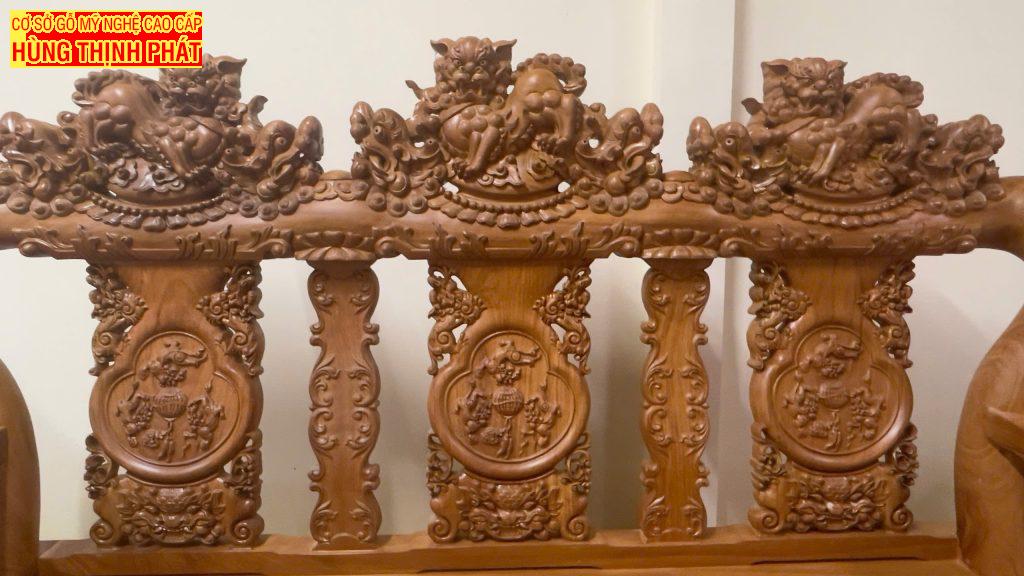 Ván tựa lưng: Dày 30mm, dày 4cm, được đục chạm hình ảnh hổ chầu uy dũng, mang ý nghĩa phong thủy tốt đẹp.
