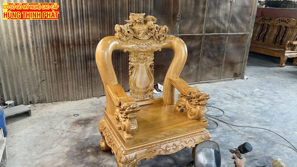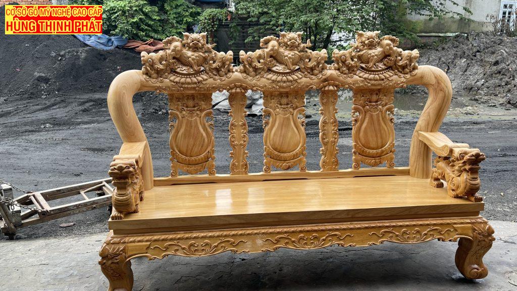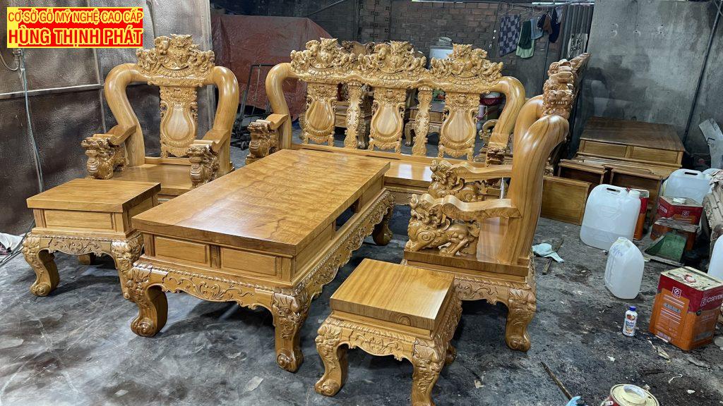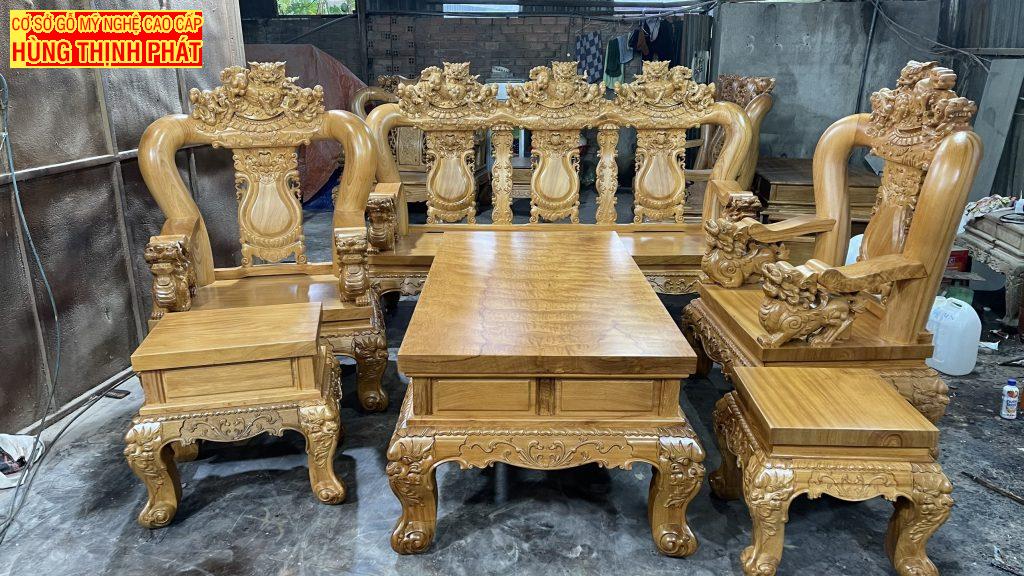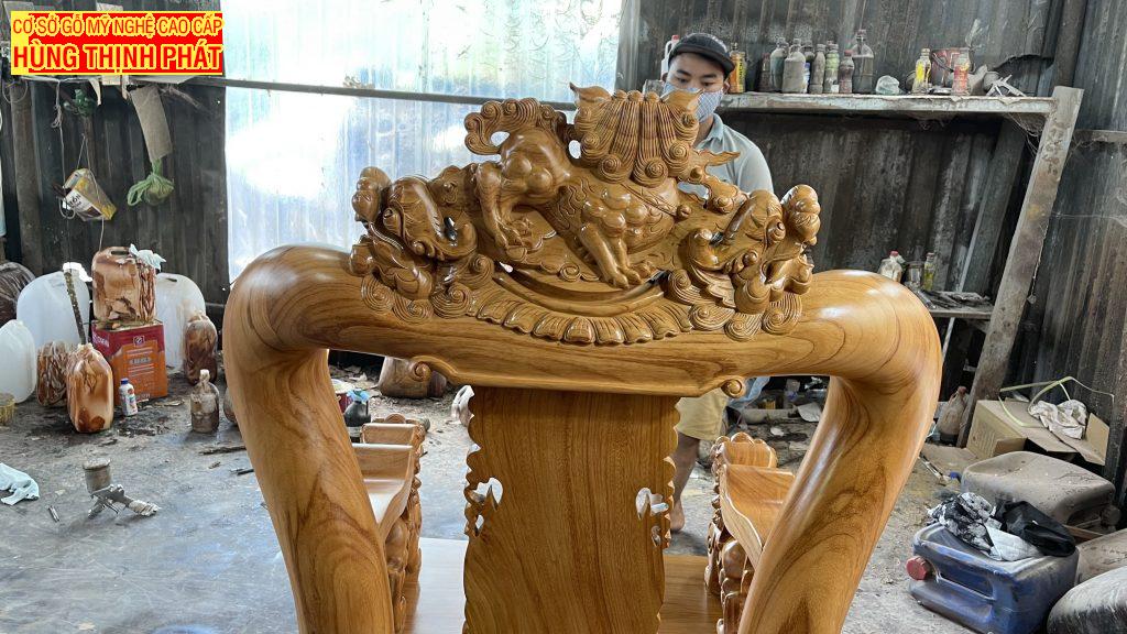 bàn ghế phòng khách gỗ gõ đỏ tay 14 đục Nghê