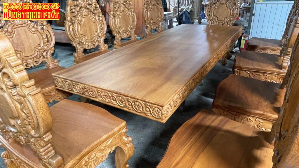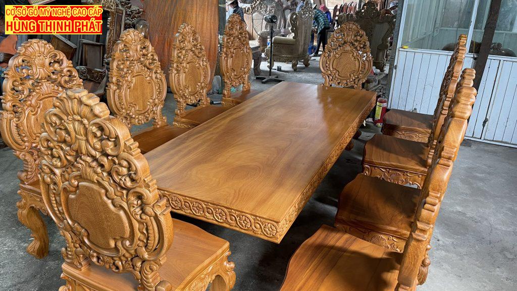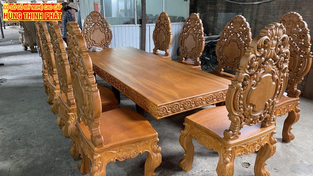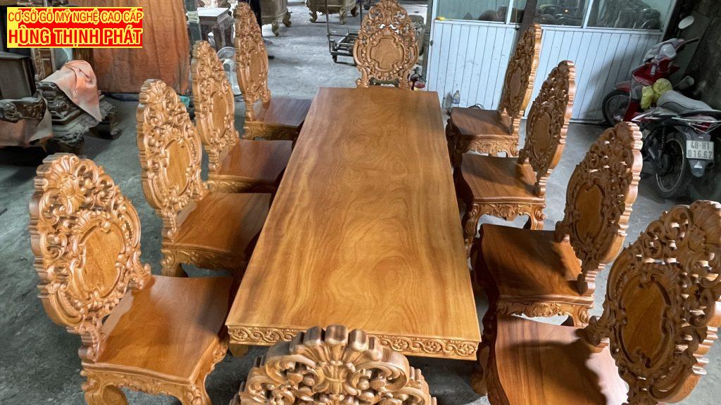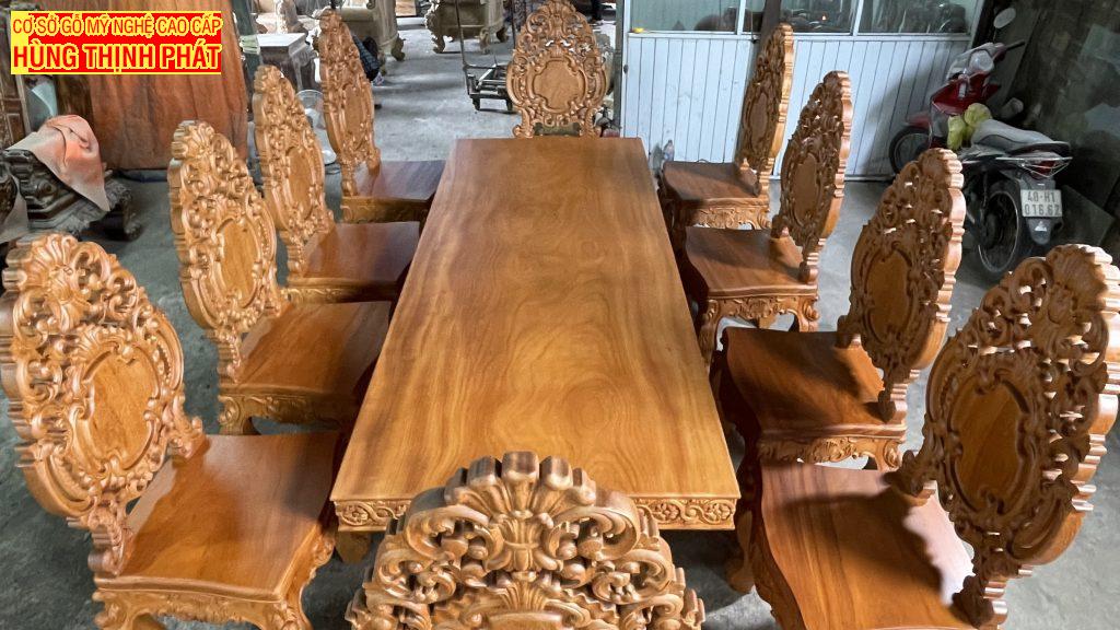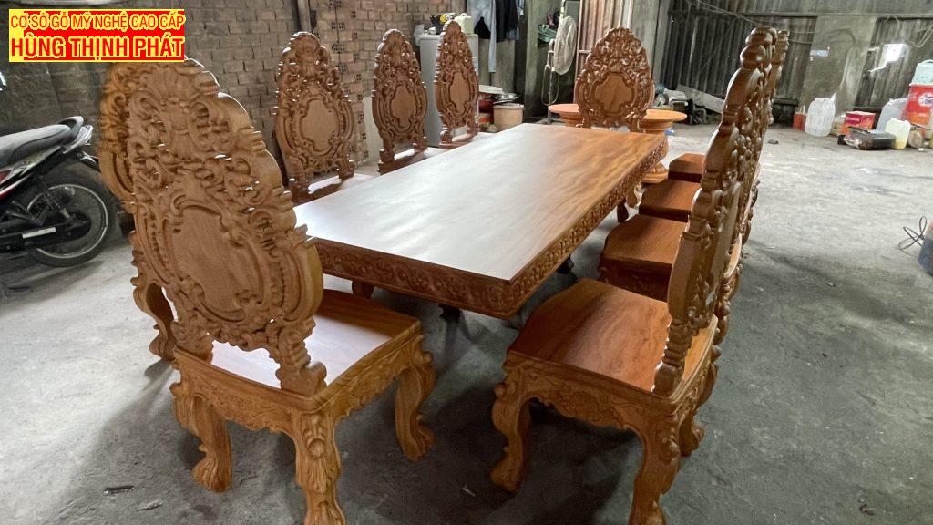 Hình ảnh sản phẩm Bộ bàn ghế ăn gỗ Gõ Đỏ 11 món sau hoàn thiện