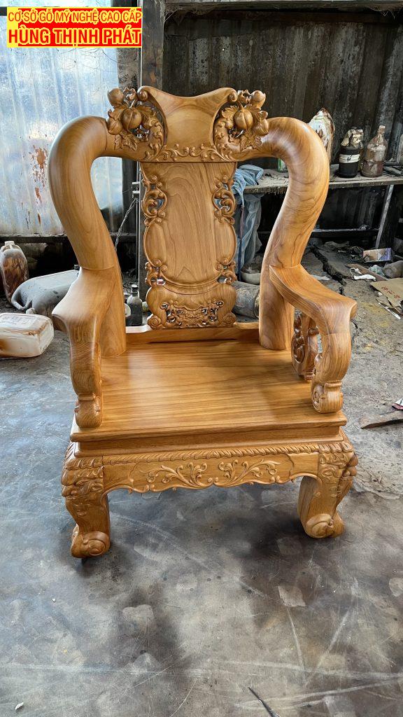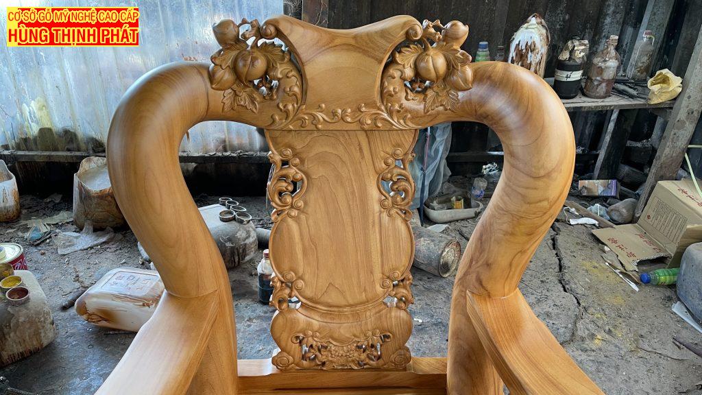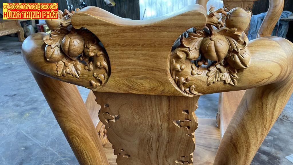 Bộ bàn ghế quốc đào tay cột 12 mặt dày 3 phân liền nguyên khối. Bộ sản phẩm chảm trổ tỉ mĩ 2 mặt được khách hàng tại TPHCM đặt hàng. Sản phẩm cao cấp với số món là 6 phù hợp với diện tích phòng khách vừa và nhỏ. Sản phẩm được chế tác trong thời gian 1 tháng làm việc liên tục của những người thợ lành nghề tại Hùng Thịnh Phát.