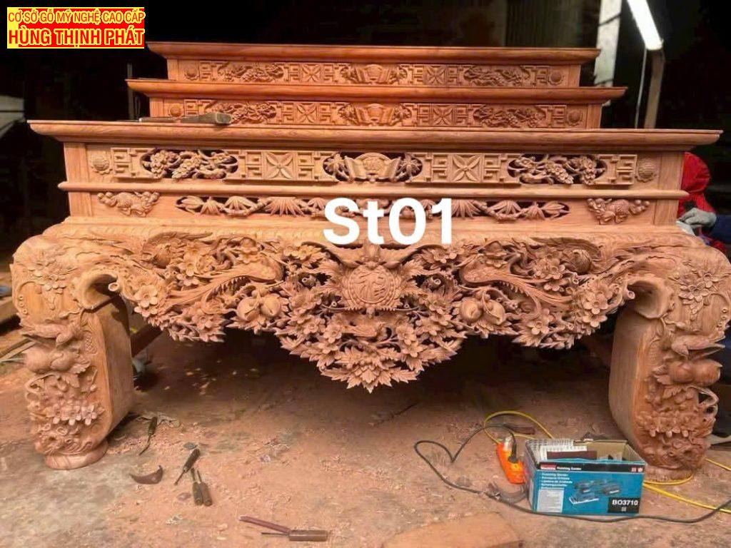 Thiết kế phong thủy siêu VIP: Mỗi chi tiết trên sập thờ đều được chúng tôi nghiên cứu kỹ lưỡng về mặt phong thủy, từ kích thước đến các đường nét chạm khắc. Mẫu sập thờ này không chỉ là vật thờ cúng mà còn là biểu tượng của sự may mắn, tài lộc và sự kính trọng đối với tổ tiên.