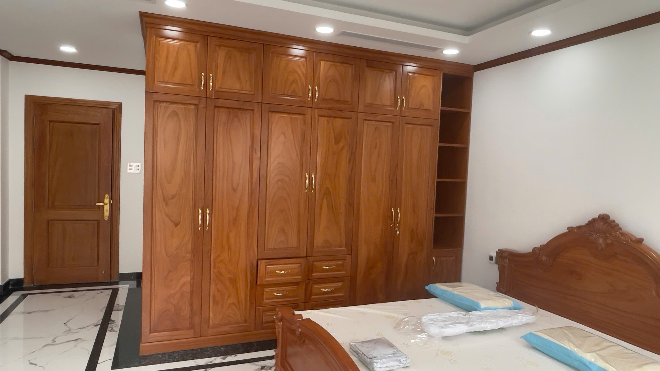 Đồ gỗ Hùng Thịnh Phát tự hào giới thiệu mẫu tủ quần áo gỗ Gõ Đỏ 6 cánh góc, một sản phẩm đỉnh cao được thiết kế và sản xuất riêng theo hợp đồng trọn gói nội thất phòng ngủ cao cấp của khách hàng. Chiếc tủ này không chỉ là một giải pháp lưu trữ hoàn hảo mà còn là biểu tượng của sự sang trọng, hiện đại, thể hiện gu thẩm mỹ tinh tế và sự đầu tư nghiêm túc vào không gian sống của gia chủ.