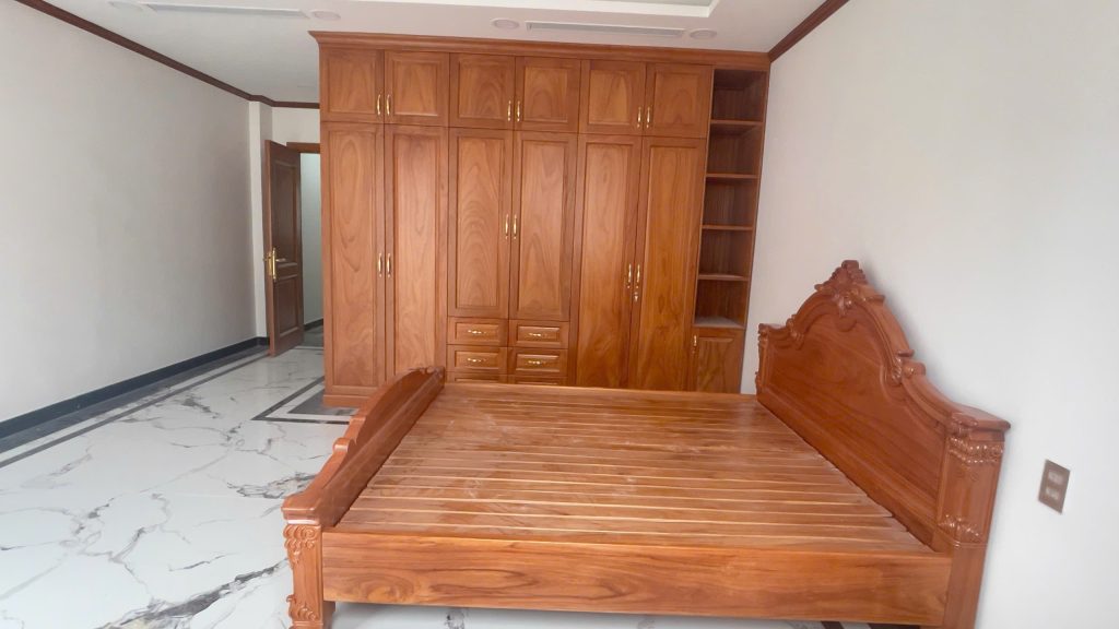Tính thẩm mỹ cao: Sự kết hợp giữa kiểu dáng hiện đại và vẻ đẹp tự nhiên của gỗ Gõ Đỏ tạo nên một tác phẩm nghệ thuật, là điểm nhấn không thể thiếu trong phòng ngủ sang trọng.