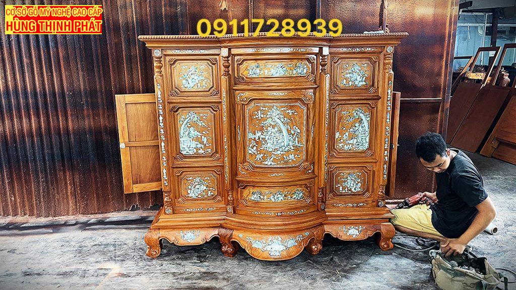Toàn bộ ván tủ dày 2 phân . Cẩn ốc Xà Cừ cực đẹp. Sản phẩm Gỗ có nguồn gốc xuất xứ hợp pháp đủ tiêu chuẩn để xuất khẩu sang thị trường Mỹ